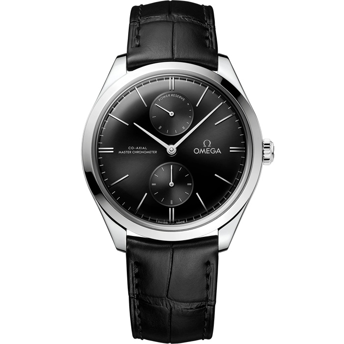 Este modelo tiene una caja de 40 mm en acero noble pulido y se presenta con pulsera de piel negra. La esfera negra abovedada incluye un indicador de reserva de marcha a las 12 h y un pequeño segundero a las 6 h, junto con agujas e índices abovedados de oro blanco de 18 qt.