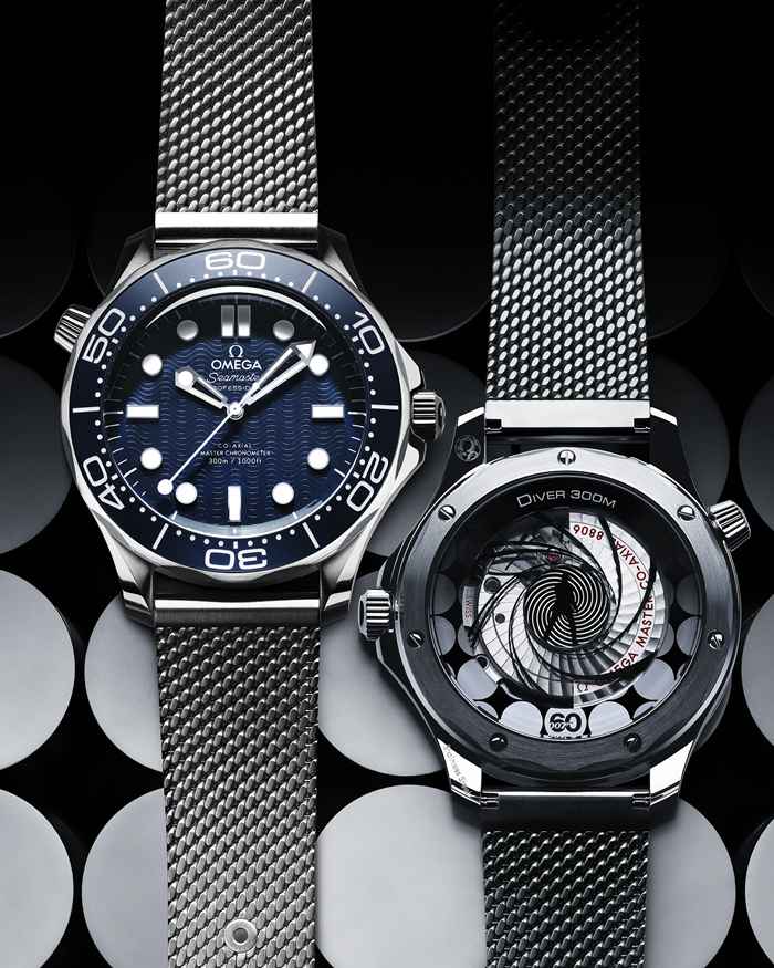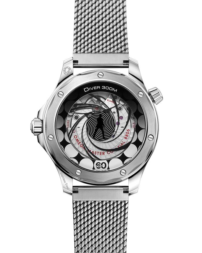 Lanzado en 2022 para celebrar el 60 aniversario de las películas de James Bond, este Seamaster Diver 300M de 42 mm de acero noble presenta una esfera de aluminio anodizado oxálico azul con diseño de ondas grabado con láser, inspirado en el Seamaster Diver 300M que llevaba James Bond en GoldenEye de 1995. El número 60 conmemorativo sustituye al tradicional triángulo invertido de la escala de inmersión.