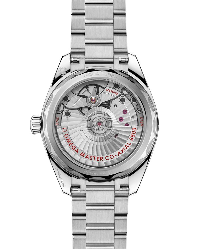 El Seamaster Aqua Terra constituye un fabuloso homenaje al rico legado marítimo de OMEGA. Este modelo de 34 mm posee una caja simétrica en acero noble con un fondo de caja atornillado de bordes ondulados.