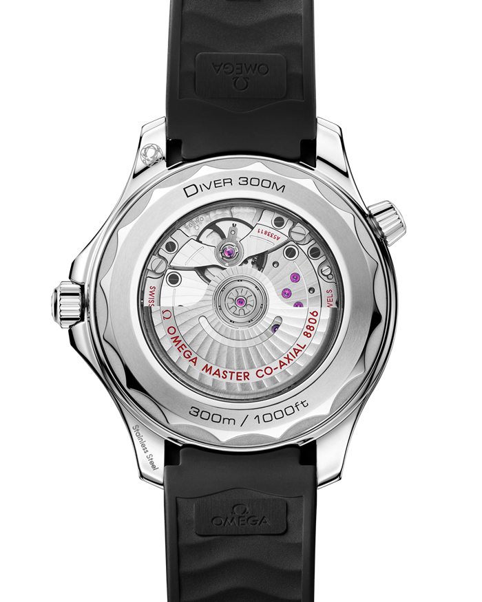 También se ha utilizado aluminio negro para crear la esfera, que está grabada a láser y muestra el emblemático motivo de ondas del Diver. Las agujas e índices esqueleto están rodiados y rellenos de Super-LumiNova blanca, mientras que las otras marcas, como el logotipo OMEGA, se han transferido en color blanco.