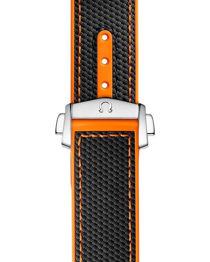 Este modelo, con cristal de zafiro resistente al rayado, luce una esfera en cerámica negra, con números arábigos y fecha situada a las 6. La esfera presenta un pequeño segundero y otra subesfera con contadores de 60 minutos y de 12 horas, para la lectura intuitiva del tiempo transcurrido. Montado sobre la caja de 45,5 mm y acero noble, está, como primicia mundial, el bisel en cerámica negra con caucho naranja. La escala de inmersión es de Liquidmetal™.